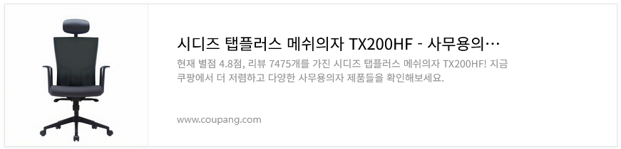 저는 쿠팡체험단이 아닌 제 돈으로 제품을 사서 리뷰를 작성한 것입 니다. 구매한 제품은 시디즈 T20 탭플러스 화이트쉘 메쉬의자입니다.