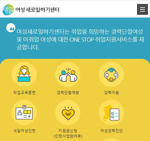 새일센터는 "육아·가사 등으로 경력이 단절된 여성 등에게 구인 구직 관리, 직업 교육훈련,일경험(인턴십),취업 후 사후관리,경력단절예방 등 종합 지원"을 목적으로 한다고 합니다.