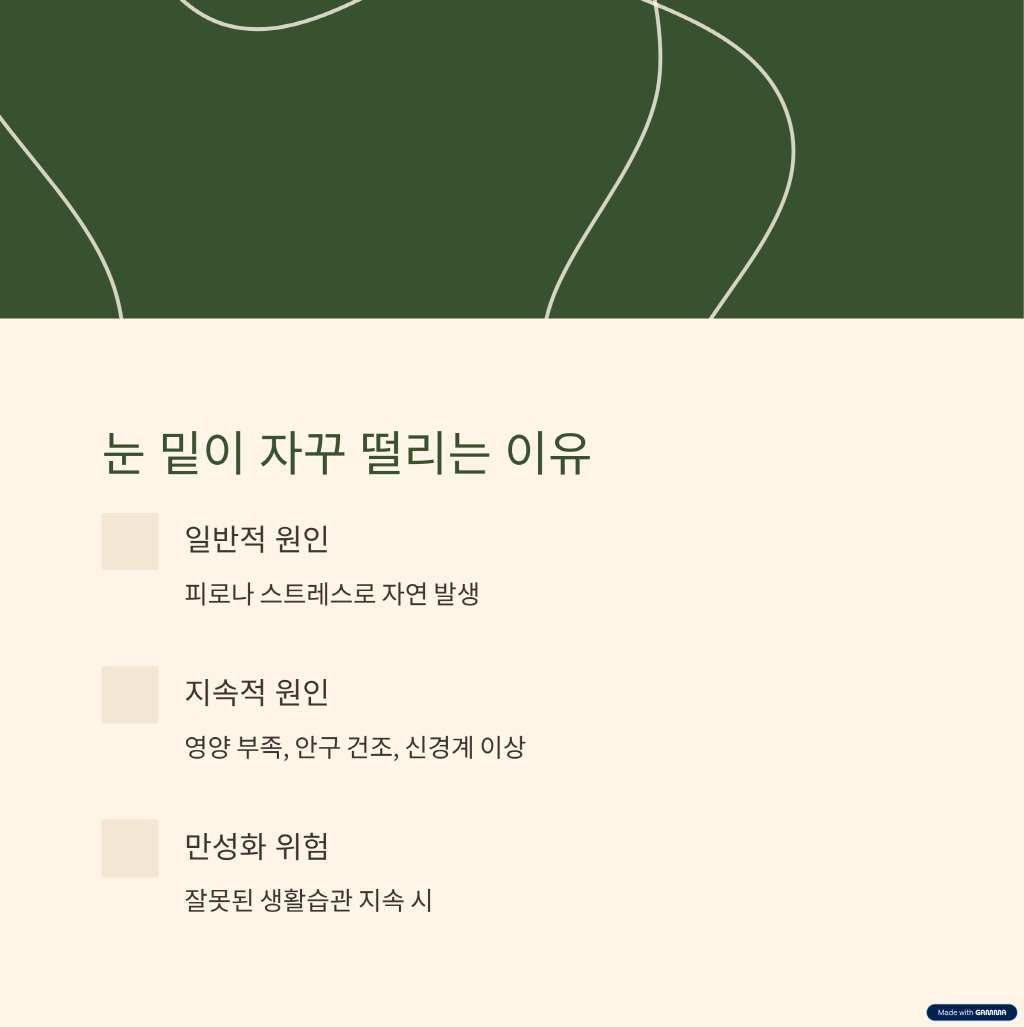 특히 잘못된 생활습관이 지속될 경우, 단순한 경련이 아닌 만성 증상으로 발전할 수 있습니다.