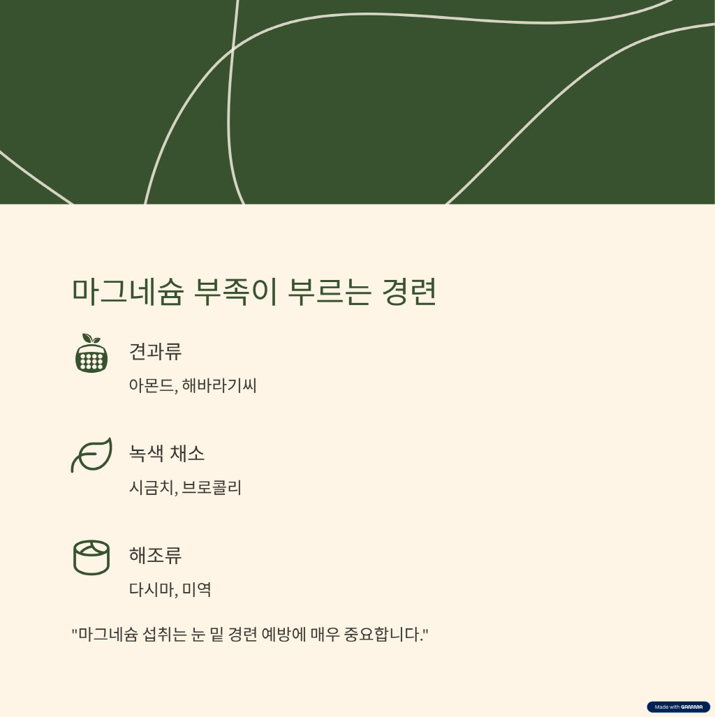 "마그네슘 섭취는 눈 밑 경련 예방에 매우 중요합니다."
