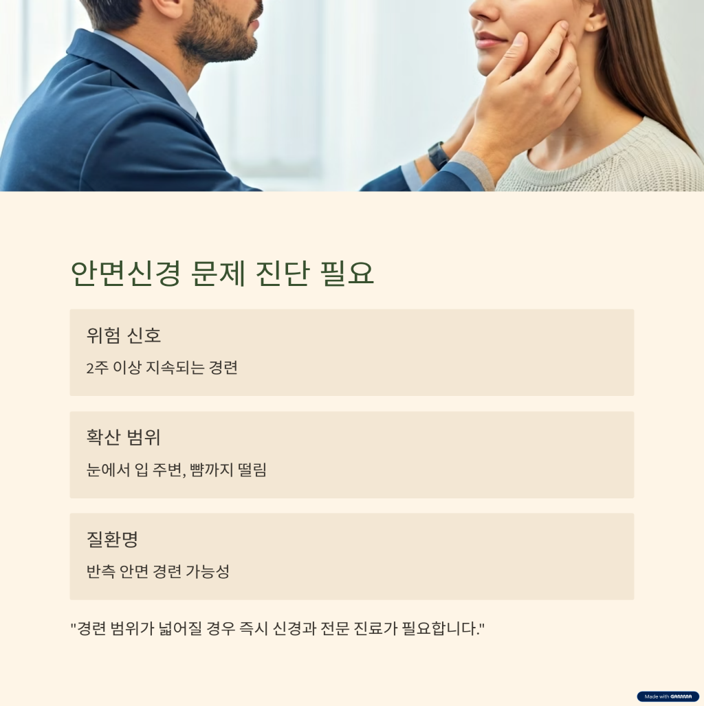 "경련 범위가 넓어질 경우 즉시 신경과 전문 진료가 필요합니다."