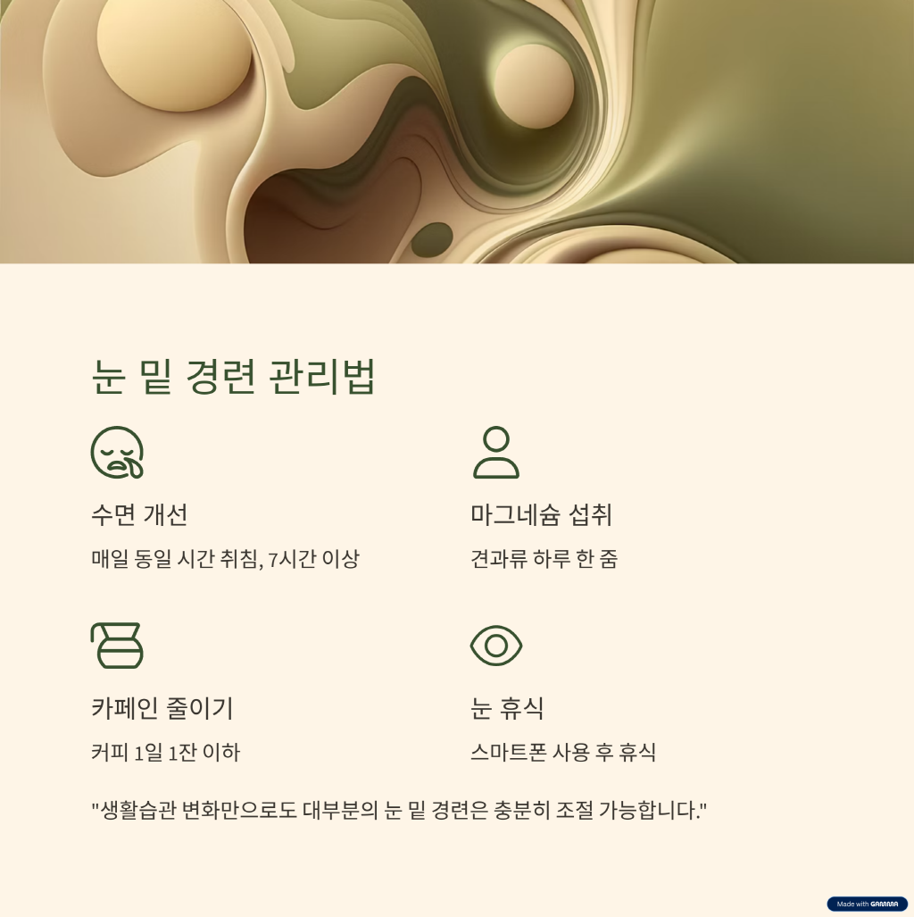 "생활습관 변화만으로도 대부분의 눈 밑 경련은 충분히 조절 가능합니다."
