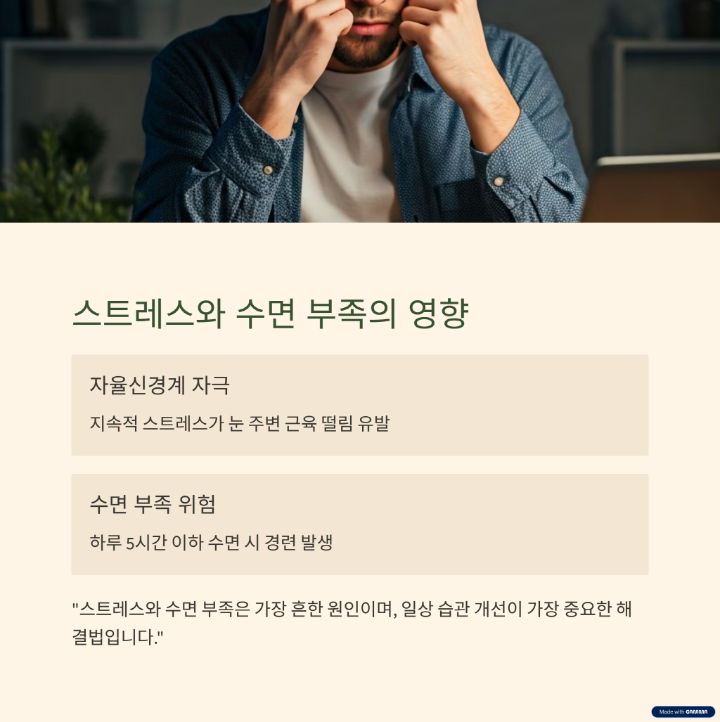 지속적인 스트레스는 자율신경계를 자극해 눈 주변 근육에 미세한 떨림을 유발합니다.