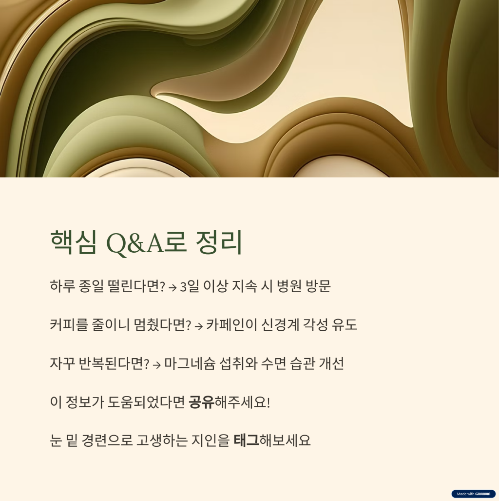 "눈 밑이 하루 종일 떨려요. 병원 가야 할까요?"