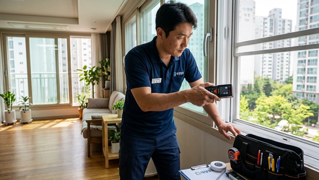 숙련된 시공자는 창틀 형태와 사용 환경을 보고 가장 적합한 자재와 방식으로 설치합니다.