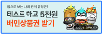 배달의 민족 이벤트 페이지에서 8개 문항 테스트를 진행하면 '고립은둔유형' 유형 결과를 확인할 수 있으며, 테스트 참여 후 이벤트를 공유하면 배민 상품권을 받을 수 있는 기회가 생깁니다.