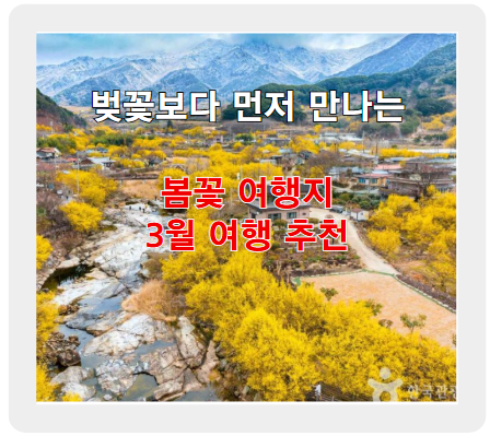 벚꽃이 피기 전, 3월 여행지 추천으로 봄을 맞이하는 아름다운 봄꽃 여행지를 소개합니다. 제주 유채꽃, 광양 매화마을, 구례 산수유마을에서 만나는 화사한 봄 풍경을 즐기시라고 개화 시기와 여행 꿀팁까지 정리했으니 확인하세요!