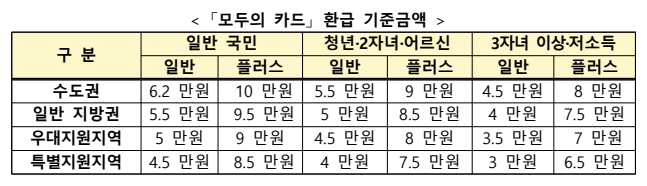 • 환급 방식 : 모두의 카드 일반형 2.8만원(9만-6.2만), 플러스형 2만원(12만-10만)