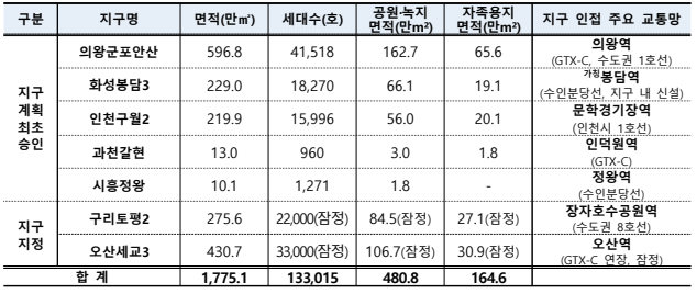 구리 토평2와 오산 세교3 지구는 이번에 새롭게 지구로 지정되었습니다.