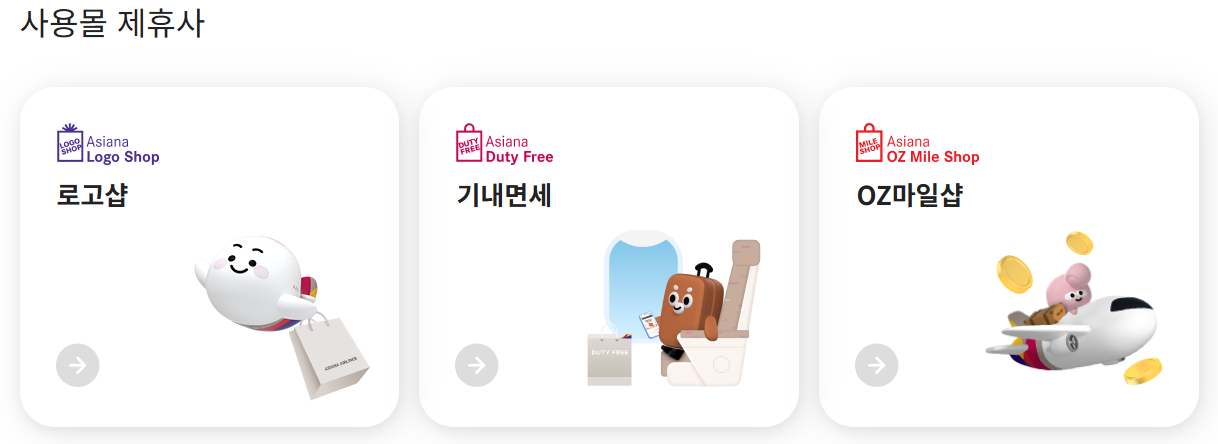 1. 아시아나 마일리지 사용몰 (로고샵 & 기내면세점) 🛍️