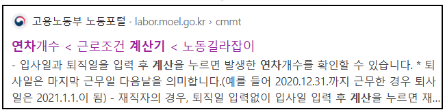 ☆ 고용노동부, 사람인 "무료 연차 계산기" 바로가기 ☆