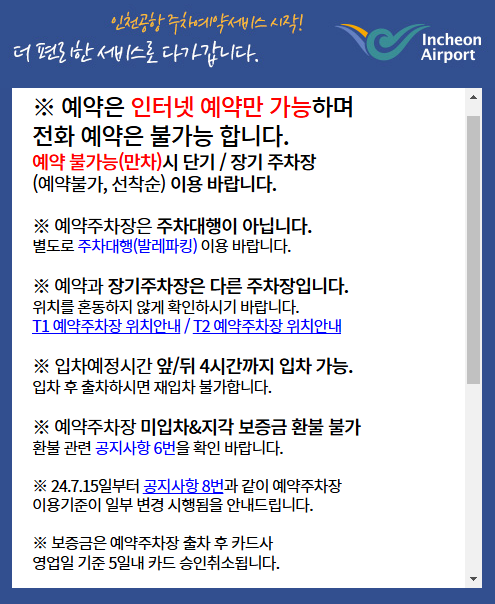 - 인천공항 공식 홈페이지에서 사전 예약이 가능합니다.