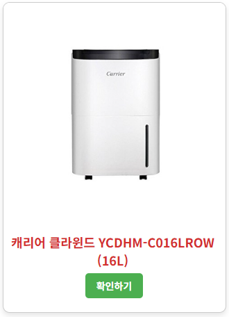 캐리어 클라윈드 YCDHM-C016LROW (16L) 모델은 10만원대 후반에서 20만원대 초반의 가격으로 만나볼 수 있는 실속형 제습기에요. 에너지 효율은 2등급이지만, 필수 부가 기능은 모두 갖추고 있어요.