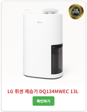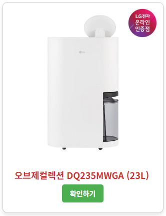 LG 제습기는 꾸준히 높은 판매량을 기록하며 프리미엄 시장을 이끌고 있습니다. 특히 LG 휘센 DQ205PSVA (20L), 오브제컬렉션 DQ235MWGA (23L), DQ214MWGA (21L), DQ134MWEC (13L) 같은 모델들이 대표적이에요. 이 모델들은 공통적으로 넉넉한 5.0L 물통 용량과 1등급 에너지 효율을 자랑한답니다.