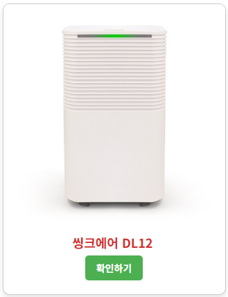- 작은 공간에 사용할 초가성비 제품을 찾는다면: 씽크에어 DL12 모델 (제습량 표기 주의!)