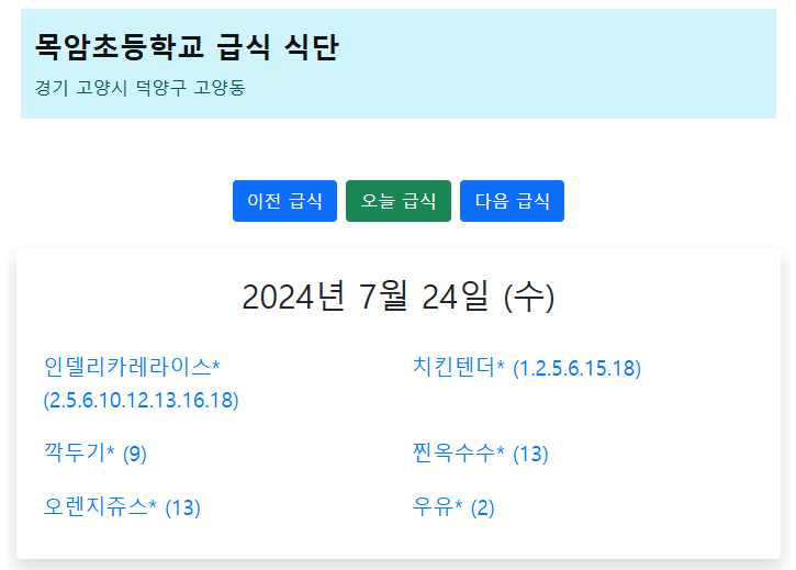 교육정보개방포털의 초중고 학교 급식 식단 정보를 기반으로, 학생이나 학부모가 어느 때든 급식 식단표를 확인할 수 있도록 서비스하는 사이트를 소개합니다.