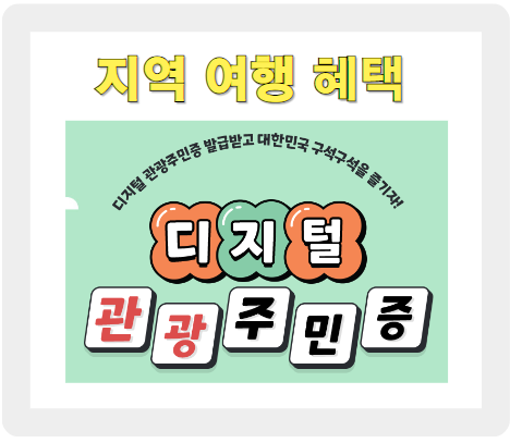 지역 여행 시 다양한 혜택을 누릴 수 있기 때문에 지역 살리기에 동참하는 의미에서 디지털 관광주민증을 발급받고, 혜택도 많이 누리시기 바랍니다.