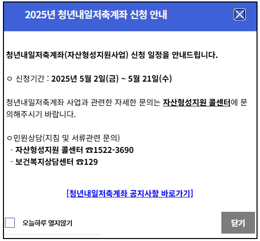 2025 청년내일저축계좌 신규 모집