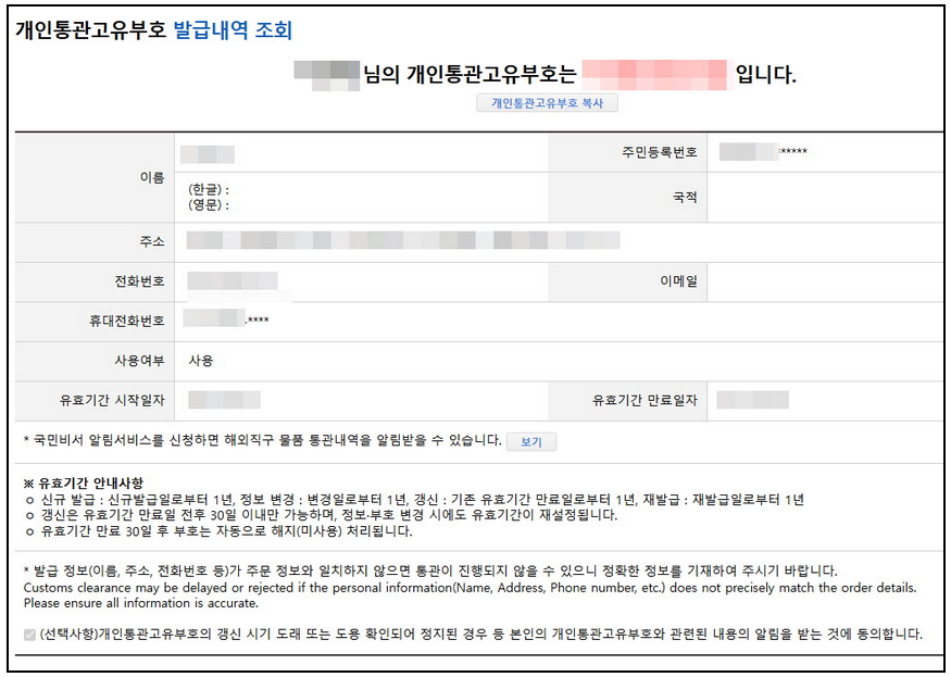 따라서 재발급 후에는 반드시 새로운 번호만 사용해야 하고, 이미 통관이 완료된 물품에는 영향이 없으니 걱정하지 않으셔도 괜찮습니다.