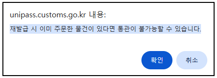 통관이 완료되지 않은 상태에서 통관번호를 재발급하면 통관 절차가 지연되거나 목록 통관이 어려워져 물품 수령이 늦어질 수 있습니다.