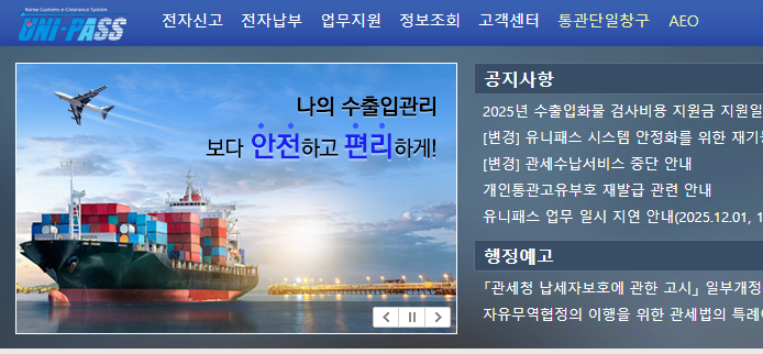 유니패스 홈페이지(unipass.customs.go.kr)에 접속