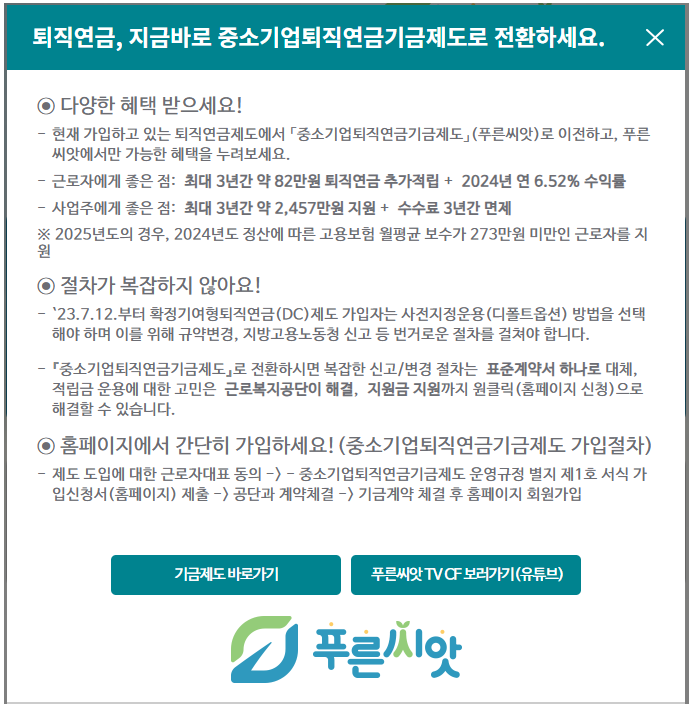 푸른씨앗 퇴직연금은 근로복지공단에서 운영하는 중소기업 전용 퇴직연금 제도입니다.