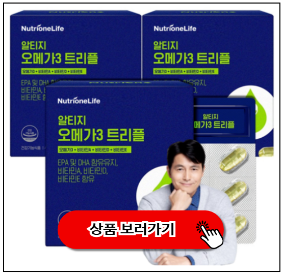 저는 뉴트리원 알티지 오메가3 트리플 60정 3개를 구입했습니다. 모델은 정우성님이라 바로 눈길이 가더라구요.